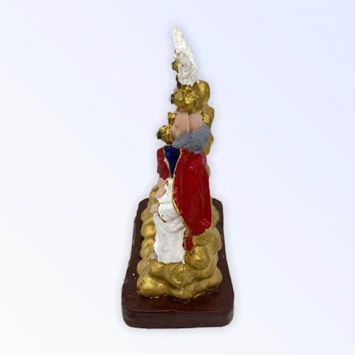A imagem do Divino Pai Eterno é formada pela Santíssima Trindade coroando a Virgem Maria. Composta pelo Pai, Filho e Espírito Santo, ou seja, um único Deus em três pessoas. Aplicação: além de servir como decoração, essa linda escultura em resina de alta qualidade, pintura artesanal e acabamento rico em detalhes pode ser um ótimo presente para homenagear pessoas especiais. Decora sala, estantes, home office, altares, aparadores, mesa de canto ou escritório. É também uma ótima opção para presente, o excelente acabamento Da pintura permite mais beleza e estilo para sua casa ou escritório. Especificações técnicas: Material: Resina e pode ocorrer pequenas variações de cores por ser uma peça artesanal e pintada à mão.