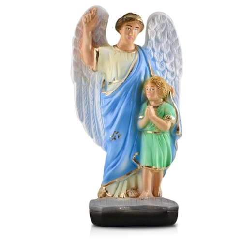 Anjo da Guarda - Imagem do Anjo da Guarda de 20cm feita em gesso cerâmico resinado ou resina super-resistente, junto com outros materiais selecionados para dar à sua imagem um alto padrão de qualidade e durabilidade.