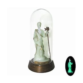 Detalhes: 15 cm de altura; 7 cm de diâmetro; Base de Plástico na cor ouro envelhecido; Imagem Fosforescente; Detalhes dourados; Redoma de acrílico.
