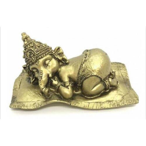 Imagem Ganesh Baby Dourado Escultura Resina 13 cm