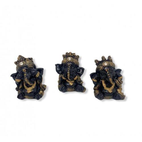 Imagem Ganesh Preto Dourado Escultura Resina 08 cm