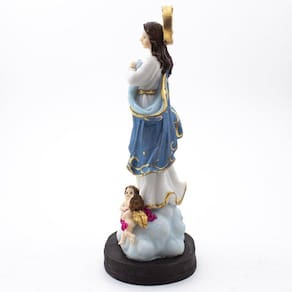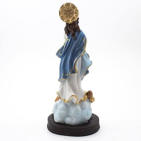 imaculada conceição refere-se a um dogma através do qual a igreja declarou que a concepção da virgem maria foi sem a mancha mácula em latim do pecado e declara também que a vida da virgem maria transcorreu completamente livre de pecado. Santa bernadete que viu nossa senhora em lourdes, disse que ela se auto intitulou: eu sou a imaculada conceição. Dimensões: altura: 21 cm - largura: 9 cm - profundidade: 8 cm