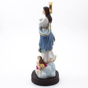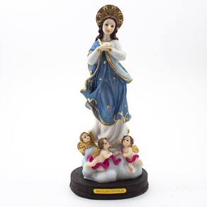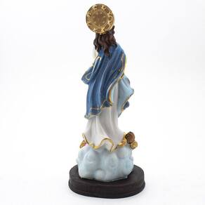 Imagem imaculada conceição resina 21 cm imaculada conceição refere-se a um dogma através do qual a igreja declarou que a concepção da virgem maria foi sem a mancha mácula em latim do pecado e declara também que a vida da virgem maria transcorreu completamente livre de pecado. Santa bernadete que viu nossa senhora em lourdes, disse que ela se auto intitulou: eu sou a imaculada conceição. Dimensões: altura: 21 cm - largura: 9 cm - profundidade: 8 cm dimensões aproximadas do produto. Produto pintado a mão, podendo sofrer variações de cores. Marca: Amém Decoração Religiosa