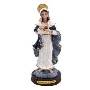 Imagem Imaculado Coração de Maria Resina 15 cm Uma das revelações para a devoção ao Sagrado Coração de Maria ou Imaculado Coração de Maria, ocorreu durante sua aparição em Fátima. Ela solicitou claramente a Lucia que divulgasse e propagasse a devoção. Dimensões: altura: 15 cm - Largura: 6 cm - Profundidade: 5,5 cm Dimensões aproximadas do produto. Produto pintado a mão, podendo sofrer variações de cores. Marca: Amém Decoração Religiosa Ean: 7890499231107