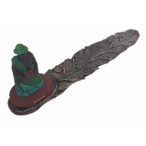 Imagem Incensário Régua Ossaim Verde Em Resina 24 Cm