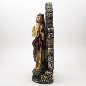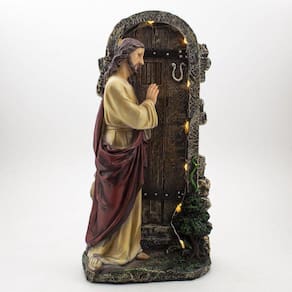 Imagem Jesus Bate à Porta com Luz Importado Resina 30 cm Jesus bate à porta, é uma imagem com referência a uma passagem bíblica. eis que estou à porta e bato. Se alguém ouvir a minha voz e abrir a porta, entrarei e cearei com ele, e ele comigo. Apocalipse 3:20