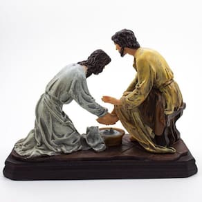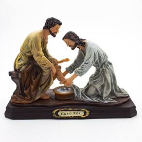 Imagem Jesus Lava Pés Resina 20 cm Era antes da festa da Páscoa. Jesus sabia que tinha chegado a sua hora de passar deste mundo para o Pai; tendo amado os seus que estavam no mundo, amou-os até o fim. Estavam tomando a ceia. O diabo já tinha posto no coração de Judas, filho de Simão Iscariotes, o propósito de entregar Jesus. Jesus, sabendo que o Pai tinha colocado tudo em suas mãos e que de Deus tinha saído e para Deus voltava, levantou-se da mesa, tirou o manto, pegou uma toalha e amarrou-a na cintura. Derramou água numa bacia e começou a lavar os pés dos discípulos, enxugando-os com a toalha com que estava cingido. Chegou a vez de Simão Pedro. Pedro disse: Senhor, tu me lavas os pés Respondeu Jesus: Agora, não entendes o que estou fazendo; mais tarde compreenderás. Disse-lhe Pedro: Tu nunca me lavarás os pés Mas Jesus respondeu: Se eu não te lavar, não terás parte comigo. Simão Pedro disse: Senhor, então lava não somente os meus pés, mas também as mãos e a cabeça. Jesus respondeu: Quem já se banhou não precisa lavar senão os pés, porque já está todo limpo. Também vós estais limpos, mas não todos. Jesus sabia quem o ia entregar; por isso disse: Nem todos estais limpos. Depois de ter lavado os pés dos discípulos, Jesus vestiu o manto e sentou-se de novo. E disse aos discípulos: Compreendeis o que acabo de fazer Vós me chamais Mestre e Senhor, e dizeis bem, pois eu o sou. Portanto, se eu, o Senhor e Mestre, vos lavei os pés, também vós deveis lavar os pés uns dos outros. Dei-vos o exemplo, para que façais a mesma coisa que eu fiz. joão 13,1-15