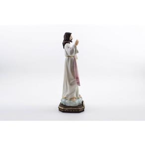 Imagem Jesus Misericordioso Resina 31 cm Jesus Cristo desceu do céu e se fez um de nós para revelar o amor e a misericórdia de Deus. ele apareceu para Santa Faustina Kowalska, na Polônia e pediu que fosse pintado um quadro exatamente como ela via. O próprio Jesus disse: Por meio dessa Imagem concederei muitas graças às almas; que toda alma tenha, por isso, acesso a ela. Dimensões: altura: 31 cm - Largura: 11 cm - Profundidade: 10 cm Dimensões aproximadas do produto. Produto pintado a mão, podendo sofrer variações de cores. Marca: Amém Decoração Religiosa Ean: 7890499231763