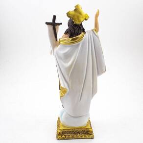 Imagem Jesus Ressuscitado Importado Resina 21 cm A ressurreição de Jesus aconteceu na manhã do Domingo de Páscoa com a descoberta do sepulcro vazio cf. Mc 16, 1-8 . São João afirma: O que vimos, ouvimos e as nossas mãos apalparam, isso atestamos 1 Jo 1,1-2 . Jesus ressuscitado apareceu a Madalena Jo 20, 19-23 ; aos discípulos de Emaús Lc 24,13-25 , aos apóstolos no Cenáculo, com Tomé ausente Jo 20,19-23 ; e depois, com Tomé presente Jo 20,24-29 ; no Lago de Genezaré Jo 21,1-24 ; no Monte na Galileia Mt 28,16-20 . Segundo São Paulo, apareceu a mais de 500 pessoas 1 Cor 15,6 e a Tiago 1 Cor 15,7 . Dimensões: altura: 21,5 cm - Largura: 11 cm - Profundidade: 7 cm Dimensões aproximadas do produto. Produto pintado a mão, podendo sofrer variações de cores. Marca: Amém Decoração Religiosa Ean: 6988022641934