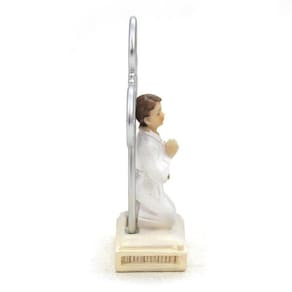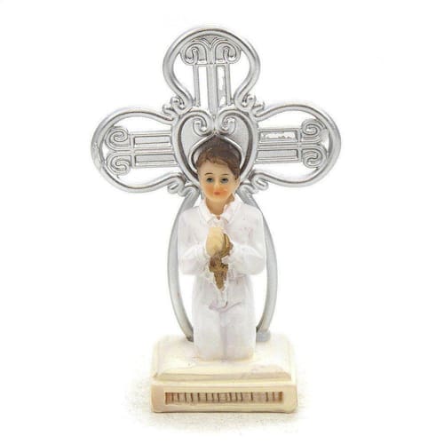 Imagem Lembranças 1 Eucaristia Menino Importada Resina 8cm 1 Eucaristia: também conhecida como Primeira Comunhão, é um sacramento da Igreja Católica em que uma pessoa recebe pela primeira vez o corpo e o sangue de Cristo na forma de pão e vinho consagrados. É considerada um dos sete sacramentos da Igreja e é geralmente realizada durante a infância, por volta dos sete ou oito anos de idade. A Eucaristia é um momento significativo na vida de um católico, pois representa a união com Cristo e a participação na comunidade da Igreja. Acredita-se que, durante a celebração da Eucaristia, o pão e o vinho se transformam no corpo e no sangue de Cristo através da consagração realizada pelo sacerdote. Dimensões: altura: 7,5 cm - Largura: 5 cm - Profundidade: 2 cm Dimensões aproximadas do produto. Produto pintado a mão, podendo sofrer variações de cores Marca: Amém Decoração Religiosa