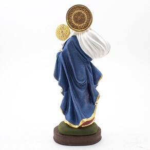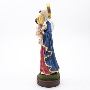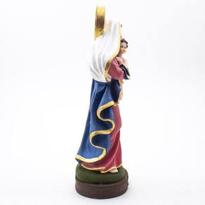 Imagem Mãe Rainha Resina 22 cm Imagem de Maria, inspirado no quadro do italiano Crosio, recebeu o nome de Mãe Três Vezes Admirável. Com o decorrer da história, foi chamado de Mãe, Rainha e Vencedora Três Vezes Admirável de Schoenstatt, e no Brasil Mãe e Rainha. Dimensões: altura: 21,5 cm - Largura: 8 cm - Profundidade: 6,5 cm Dimensões aproximadas do produto. Produto pintado a mão, podendo sofrer variações de cores. Marca: Não Informado