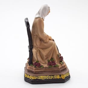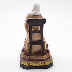 Imagem Nhá Chica Sentada Importada Resina 15 cm Francisca de Paula de Jesus ou Nhá Chica, como era chamada por todos, nasceu em 1808, na Porteira dos Vilellas, povoado próximo de São Del Rei em Minas Gerais. conhecida como a mãe dos pobres, acolheu o pedido de sua mãe para seguir o caminho da fé e da caridade, tinha o piedoso costume de convidar os pobres e demais moradores da região às sextas feiras, para com ela elevarem preces à Virgem Mãe de Deus. Dimensões: altura: 14 cm - Largura: 7,5 cm - Profundidade: 8 cm Dimensões aproximadas do produto. Produto pintado a mão, podendo sofrer variações de cores. Marca: Não Informado