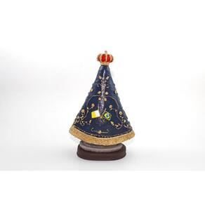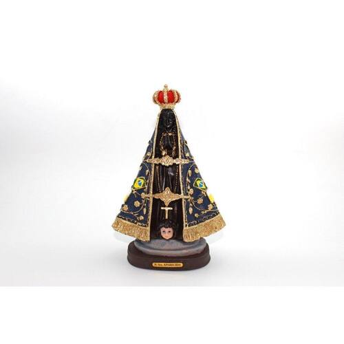 Imagem Nossa Senhora Aparecida Bandeira Resina 22 cm Nossa Senhora da Conceição Aparecida é denominada a padroeira do Brasil. Dimensões: altura: 22 cm - Largura: 16 cm - Profundidade: 8 cm Dimensões aproximadas do produto. Produto pintado a mão, podendo sofrer variações de cores. Marca: Não Informado