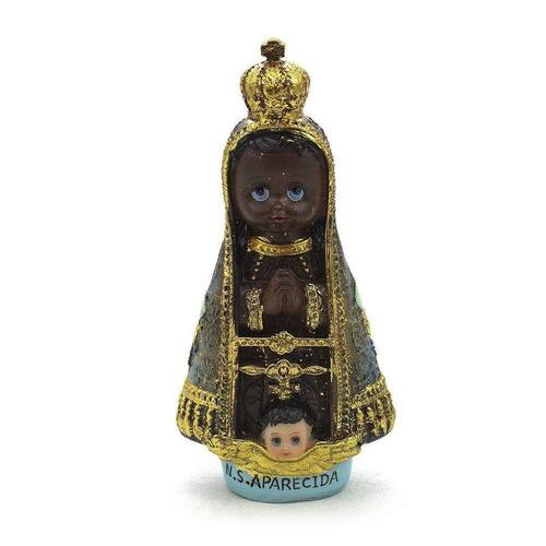 Imagem Nossa Senhora Aparecida Infantil Importada Resina 12 cm Nossa Senhora da Conceição Aparecida é a padroeira do Brasil e uma das principais santas católicas. Segundo a tradição católica, a imagem da santa foi encontrada no rio Paraíba do Sul por três pescadores em 1717. A partir desse momento, Nossa Senhora Aparecida se tornou um símbolo de devoção e fé para o povo brasileiro. A data litúrgica de Nossa Senhora Aparecida é celebrada em 12 de outubro, que também é o Dia das Crianças no Brasil. A devoção à santa é muito forte no país e a imagem da Nossa Senhora Aparecida está presente em igrejas, casas e locais públicos em todo o território nacional. Dimensões: altura: 13 cm - Largura:7 cm - Profundidade: 4 cm Dimensões aproximadas do produto. Produto pintado a mão, podendo sofrer variações de cores. Marca: Amém Decoração Religiosa