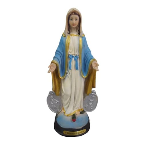Imagem da Nossa Senhora da Medalha Milagrosa em Resina Nossa Senhora das Graças é uma invocação especial pela qual é conhecida a Santíssima Virgem Maria, também invocada com a mesma intenção sob o nome de Nossa Senhora da Medalha Milagrosa e Nossa Senhora Medianeira de Todas as Graças. Precede as aparições marianas ocorridas em La Salette, em Lourdes e em Fátima. Altura: 16.00 cm Largura: 7.00 cm Comprimento: 16.00 cm Peso: 250g Marca: Não Informado