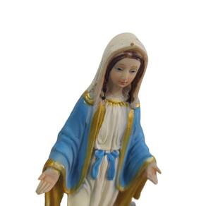 Imagem da Nossa Senhora da Medalha Milagrosa em Resina Nossa Senhora das Graças é uma invocação especial pela qual é conhecida a Santíssima Virgem Maria, também invocada com a mesma intenção sob o nome de Nossa Senhora da Medalha Milagrosa e Nossa Senhora Medianeira de Todas as Graças. Precede as aparições marianas ocorridas em La Salette, em Lourdes e em Fátima. Altura: 16.00 cm Largura: 7.00 cm Comprimento: 16.00 cm Peso: 250g Marca: Não Informado Ean: 7908161705945