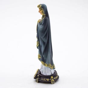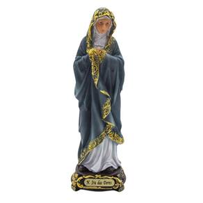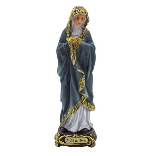 Imagem Nossa Senhora das Dores Importada Resina 12,5 cm Nossa Senhora das Dores ou Mater Dolorosa Mãe Dolorosa é um dos vários títulos que a Virgem Maria. Este em particular refere-se às dores que sofreu em seu Coração Imaculado, a fuga para o Egito, a perda do Menino Jesus, a Paixão do Senhor, crucificação, morte e sepultura de Jesus Cristo. Dimensões: altura: 13 cm - Largura: 4 cm - Profundidade: 4 cm Dimensões aproximadas do produto. Produto pintado a mão, podendo sofrer variações de cores. Marca: Amém Decoração Religiosa Ean: 6988102645425