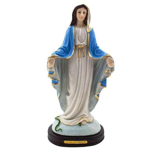 Imagem Nossa Senhora das Graças Resina 22 cm O título da Virgem Maria que se apresentou como Nossa Senhora das Graças a uma noviça, em Paris, enquanto rezava numa capela e recebeu a revelação. Dimensões: altura: 22,5 cm - Largura: 9,5 cm - Profundidade: 8 cm Dimensões aproximadas do produto. Produto pintado a mão, podendo sofrer variações de cores. Marca: Amém Decoração Religiosa Ean: 7890499231336