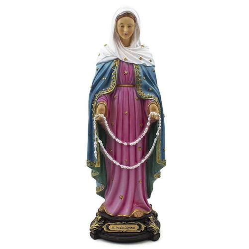 Imagem Nossa Senhora das Lagrimas Importada Resina 32 cm Nossa Senhora das Lágrimas é uma devoção católica venerada especialmente na cidade de Siracusa, na ilha da Sicília, na Itália. Ela é considerada a padroeira dessa cidade. A devoção a Nossa Senhora das Lágrimas de Siracusa está associada a um evento milagroso ocorrido em 29 de agosto de 1953. Nesse dia, uma estátua de Maria, conhecida como Madonna delle Lacrime, teria derramado lágrimas em uma casa local. Esse fenômeno atraiu a atenção e a devoção dos fiéis, transformando-se em um local de peregrinação e adoração mariana. A data litúrgica oficial de Nossa Senhora das Lágrimas de Siracusa é celebrada em 29 de agosto, em memória do milagre das lágrimas. Nesse dia, os fiéis participam de celebrações religiosas, incluindo missas, procissões e outras atividades devocionais em honra a Nossa Senhora das Lágrimas. Nossa Senhora das Lágrimas de Siracusa é considerada a padroeira da cidade de Siracusa, e sua devoção é amplamente celebrada pelos habitantes locais. Ela é venerada como uma intercessora poderosa e um símbolo de consolo e esperança para aqueles que enfrentam dificuldades e tristezas em suas vidas. No Brasil, Nossa Senhora das Lágrimas teve a sua origem nas aparições recebidas pela Irmã Amália de Jesus Flagelado na capela do convento da Congregação das Irmãs Missionárias de Jesus Crucificado, situada na cidade de Campinas, no Estado de São Paulo, no Brasil e data litúrgica é dia 8 de março. Dimensões: altura: 32 cm - Largura: 11 cm - Profundidade: 11 cm Dimensões aproximadas do produto. Produto pintado a mão, podendo sofrer variações de cores. Marca: Amém Decoração Religiosa Ean: 6988051083637