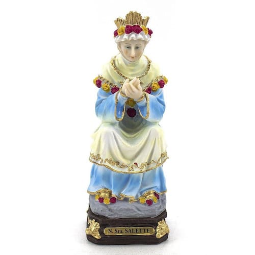 Imagem Nossa Senhora de La Salette Resina 17 cm Nossa Senhora de La Salette, é a invocação dada à Virgem Maria nas suas aparições na montanha de La Salette, nos Alpes franceses, para duas crianças: Maximin Giraud com 11 anos e Mélanie Calvat com 15 anos em 1846. Dimensões: altura: 17 cm - Largura: 6 cm - Profundidade: 6 cm Dimensões aproximadas do produto. Produto pintado a mão, podendo sofrer variações de cores. Marca: Não Informado