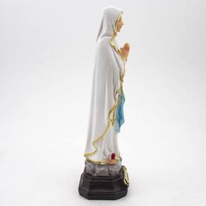 Imagem Nossa Senhora de Lourdes Importada Resina 20 cm Nossa Senhora de Lourdes é uma das atribuíções de Virgem Maria e que surgiu com relatos das aparições a Santa Bernardete Soubirous, numa gruta de Lourdes, na França. Conehcida como a padroeira dos enfermos. Dimensões: altura: 19 cm - Largura: 6 cm - Profundidade: 5 cm Dimensões aproximadas do produto. Produto pintado a mão, podendo sofrer variações de cores. Marca: Não Informado
