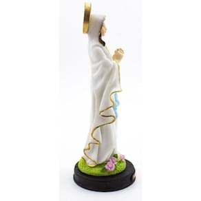 Imagem Nossa Senhora de Lourdes Resina 22 cm Nossa Senhora de Lourdes é uma das atribuíções de Virgem Maria e que surgiu com relatos das aparições a Santa Bernardete Soubirous, numa gruta de Lourdes, na França. Conehcida como a padroeira dos enfermos. Dimensões: altura: 22 cm - Largura: 8 cm - Profundidade: 8 cm Dimensões aproximadas do produto. Produto pintado a mão, podendo sofrer variações de cores. Marca: Não Informado