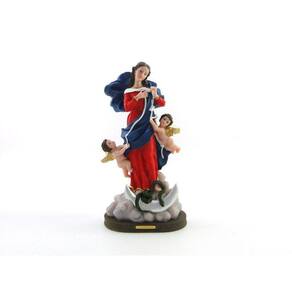 Imagem Nossa Senhora Desatadora dos Nós Resina 32 cm Nossa Senhora Desatadora dos Nós: Esse titulo da Virgem Maria, se originou na Alemanha. A imagem se apresenta com um anjo entregando as mãos de Maria uma fita com nós de diversos tamanhos e do outro lado um anjo recebendo a fita sem nós. Eles representam o pecado, que são desfeitos por Nossa Senhora. Dimensões: altura: 32 cm - Largura: 17 cm - Profundidade: 11 cm Dimensões aproximadas do produto. Produto pintado a mão, podendo sofrer variações de cores. Marca: Amém Decoração Religiosa Ean: 7890499230445
