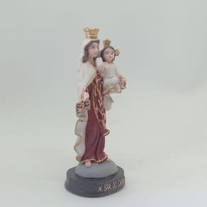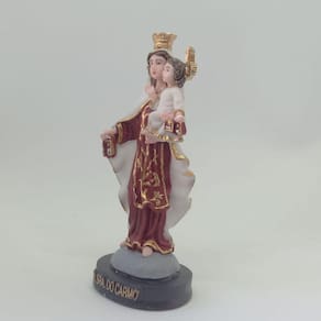 A imagem de Nossa Senhora do Carmo é esculpida em resina nacional, com cores e tons que podem sofrer pequenas variações. Para garantir a preservação do acabamento e qualidade, nossos produtos são cuidadosamente embalados antes do envio.