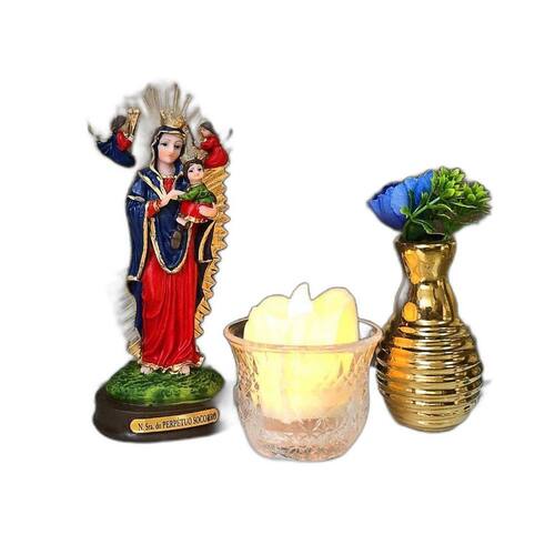 Imagem Nossa Senhora do Perpétuo Socorro Resina 15 cm Nossa Senhora do Prepétuo Socorro, trata-se de uma pintura do século XIII, de estilo bizantino. De semblante grave e melancólico, Nossa Senhora traz no braço esquerdo o Menino Jesus, ao qual o Arcanjo Gabriel apresenta quatro cravos e uma cruz. Ela é a senhora da morte e a rainha da vida, o socorro seguro e certo dos que a invocam com amor filial. Dimensões: altura: 14 cm - Largura: 6 cm - Profundidade: 5 cm Dimensões aproximadas do produto. Produto pintado a mão, podendo sofrer variações de cores. Marca: Não Informado