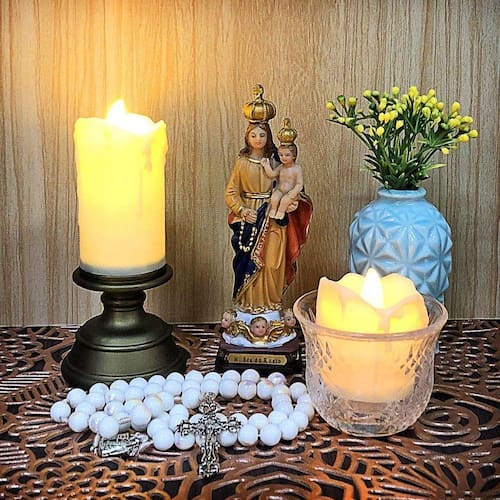 Imagem Nossa Senhora do Rocio Importada Resina 12,5 cm Nossa Senhora do Rosário do Rocio, popularmente conhecida como Nossa Senhora do Rocio, costuma ser chamada também de Nossa Senhora do Amanhecer ou Nossa Senhora do Orvalho Matutino. A imagem de Nossa Senhora do Rocio foi milagrosamente encontrada no século XVII por pescadores, na baía de Paranaguá, ao amanhecer, na hora do orvalho. Considerada padroeira do Paraná e protetora dos navegantes. Dimensões: altura: 12,5 cm - Largura: 4 cm - Profundidade: 3,5 cm Dimensões aproximadas do produto. Marca: Amém Decoração Religiosa Ean: 6988030242963