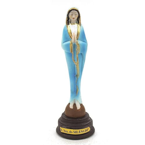 Imagem Nossa Senhora do Silêncio Azul Resina 13 cm Nossa Senhora do Silêncio: Nossa Senhora apareceu em uma aldeia de Knock Dublin , sem dizer uma palavra, nem por isso que ela não fala ao coração de cada um de nós. Dimensões: altura: 13 cm - Largura: 4 cm - Profundidade: 4 cm Dimensões aproximadas do produto. Produto pintado a mão, podendo sofrer variações de cores. Marca: Não Informado