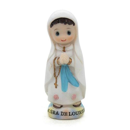 Imagem Nossa Senhora de Lourdes Infantil Importada Resina 8 cm Nossa Senhora de Lourdes é uma das atribuíções de Virgem Maria e que surgiu com relatos das aparições a Santa Bernardete Soubirous, numa gruta de Lourdes, na França. Conehcida como a padroeira dos enfermos. Dimensões: altura: 8 cm - Largura: 3 cm - Profundidade: 2 cm Dimensões aproximadas do produto. Produto pintado a mão, podendo sofrer variações de cores. Marca: Amém Decoração Religiosa
