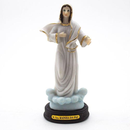 Imagem Nossa Senhora Rainha da Paz Resina 15 cm Rainha da Paz é um dos títulos de Nossa Senhora e está associado às aparições da Virgem Maria em Medjugorje Bósnia . Lá, ela ainda aparece a seis videntes e se apresenta como Rainha da Paz, que ainda a veem e transmitem suas mensagem para o mundo. Dimensões: altura: 15 cm - Largura: 6,5 cm - Profundidade: 6 cm Dimensões aproximadas do produto. Produto pintado a mão, podendo sofrer variações de cores. Nsra, sra Marca: Amém Decoração Religiosa Ean: 7890499232524