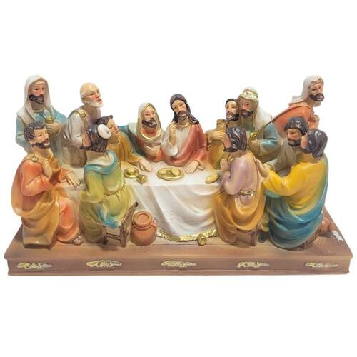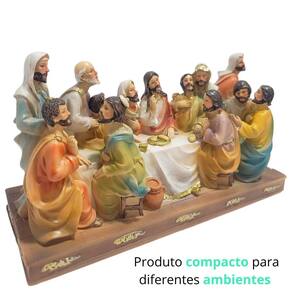 Imagem religiosa decorativa santa ceia ded05526 Esta belíssima imagem da santa ceia, esculpida em poliresina de alta qualidade, retrata com riqueza de detalhes o momento sagrado em que jesus cristo compartilha sua última refeição com os doze apóstolos. Cada personagem é representado com expressões e gestos realistas, transmitindo a emoção e a profundidade espiritual do evento. A peça apresenta um acabamento refinado, com pintura artesanal e cores vibrantes, que destacam os detalhes das vestes e dos elementos da mesa, como o pão e o vinho, símbolos da eucaristia. A base ornamentada confere um toque de sofisticação e elegância, tornando-a uma peça ideal para altares, salas de oração ou decoração de ambientes religiosos. Garanta já a sua Por que comprar com a imports - enviamos em até 24 horas; - produto de ótima qualidade; - produto testado e muito bem embalado para chegar em perfeito estado; - foco total no cliente. Informações importantes: - modelo: imagem santa ceia - material: poliresina - peso: 0,510 - tamanho: Comprimento: 20,5 cm Largura: 7 cm Altura: 11 cm - produto compacto - ideal para decorar ambientes - imagem realista