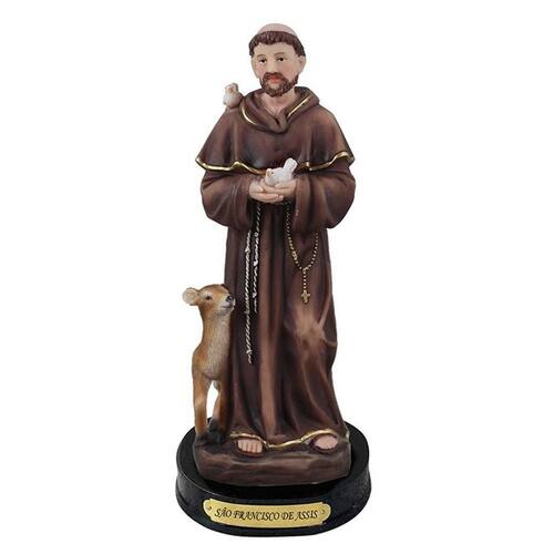Imagem São Francisco de Assis em Resina - Amor à Natureza e Humildade 14cm A Imagem de São Francisco de Assis, com 14cm de altura, é uma peça feita em resina de alta qualidade, perfeita para quem deseja expressar sua devoção ao santo conhecido por sua simplicidade, amor aos animais e dedicação à paz. Com pintura artesanal e acabamento refinado, é ideal para oratórios, altares ou como presente cheio de significado espiritual. Destaques do Produto: Material durável - Produzida em resina resistente, com acabamento detalhado e de qualidade. Pintura artesanal - Cores suaves e expressão serena aplicadas com delicadeza à mão. Tamanho compacto - Ideal para pequenos espaços de oração, estantes ou mesas devocionais. Símbolo de humildade e fraternidade - São Francisco é referência de fé, cuidado com a criação e vida simples. Excelente opção para presente - Um item devocional significativo para amigos, familiares e amantes dos animais. Marca: Não Informado