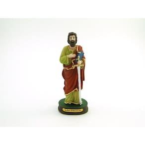 Imagem Resina 14 cm , responsável pela expansão do cristianismo no Ocidente. Ele não conviveu com Jesus, mas o Senhor se revelou a ele de maneira extraordinária. Tanto que, de perseguidor dos cristãos, Saulo, como era conhecido no mundo judaico, se transformou no maior propagador da fé em Jesus Cristo. Dimensões: altura: 14 cm - Largura: 4,5 cm - Profundidade: 5,5 cm Dimensões aproximadas do produto. Produto pintado a mão, podendo sofrer variações de cores. Marca: Não Informado Ean: 7890499231183