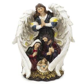 Imagem Sagrada Família Anjo Asa Branca Importada Resina 19 cm
