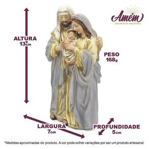 Imagem Sagrada Familia Importada Resina 13 cm A Sagrada Família é imagem modelo de toda a família humana. Exemplo de respeito, amor e união. Dimensões: altura: 13 cm - Largura: 7 cm - Profundidade: 5 cm Dimensões aproximadas do produto. Produto pintado a mão, podendo sofrer variações de cores. Marca: Amém Decoração Religiosa