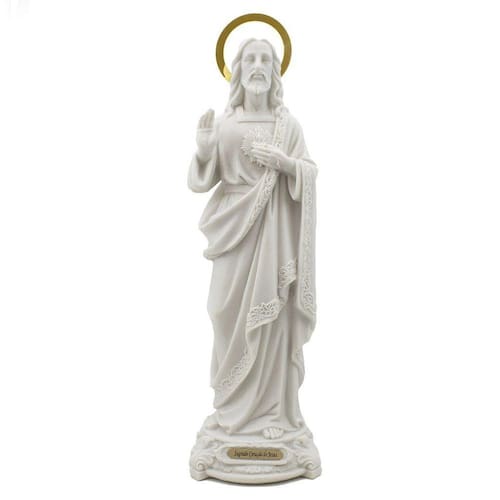 Imagem Sagrado Coração de Jesus Importada Resina 35 cm Sagrado coração de Jesus: O coração é a representação do infinito amor de Deus, do amor que chega a seu ponto alto com a vinda de Jesus. Dimensões: altura: 35 cm - Largura:10 cm - Profundidade: 10 cm Dimensões aproximadas do produto. Marca: Amém Decoração Religiosa Ean: 6988051088397