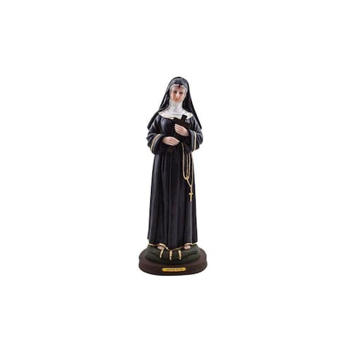 Imagem Santa Rita Resina 32 cm Santa Rita, também conhecida como Santa dos Impossíveis. Possuía um estigma em sua testa. Dimensões: altura: 32 cm - Largura: 12 cm - Profundidade: 11 cm Dimensões aproximadas do produto. Produto pintado a mão, podendo sofrer variações de cores. Marca: Amém Decoração Religiosa Ean: 7890499231787