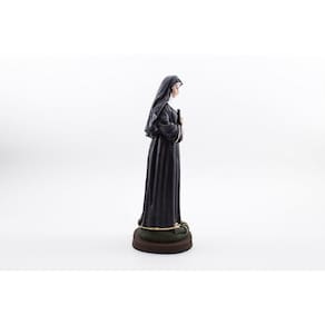 Imagem Santa Rita Resina 32 cm Santa Rita, também conhecida como Santa dos Impossíveis. Possuía um estigma em sua testa. Dimensões: altura: 32 cm - Largura: 12 cm - Profundidade: 11 cm Dimensões aproximadas do produto. Produto pintado a mão, podendo sofrer variações de cores. Marca: Não Informado