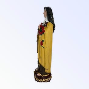Imagem Santa Teresinha em Resina 32 cm Santa Teresinha ainda é conhecida por ser padroeira dos doentes de AIDS, dos floristas e jardineiros e dos doentes de tuberculose. Além de servir como decoração, essa linda escultura em resina de alta qualidade, pintura artesanal E acabamento rico em detalhes pode ser um ótimo presente para homenagear pessoas especiais.