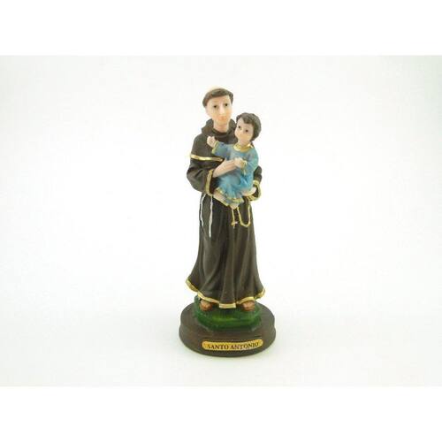 Imagem Santo Antonio Resina 15 cm Santo Antonio, popularmente é conhecido como santo casamenteiro, pois ajudava mulheres humildes a montar um enxoval e conseguirem um dote. Dimensões: altura: 15 cm - Largura: 6 cm - Profundidade: 5,5 cm Dimensões aproximadas do produto. Produto pintado a mão, podendo sofrer variações de cores. Marca: Não Informado