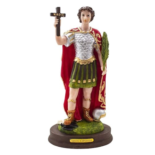 Imagem Santo Expedito Resina 20 cm Santo Expedito, conhecido como santo das causas urgentes. Foi um mártir da Igreja, por não renunciar a sua fé, sendo decapitado pelos romanos. Dimensões: altura: 21 cm - Largura: 11 cm - Profundidade: 8 cm Dimensões aproximadas do produto. Produto pintado a mão, podendo sofrer variações de cores. Marca: Não Informado