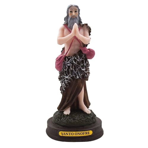 Imagem Santo Onofre Resina 15 cm Santo Onofre era filho de um rei da Pérsia. O rei por influência do diabo expos o filho recém-nascido ao fogo por suspeitar de bastardia, mas foi salvo milagrosamente. E recebeu o nome de Onofre por indicação de um anjo. Depois de ter estudado em um convento egípcio e de alguns episódios, retirou-se para o deserto do Alto Egito, usando apenas folhas, cabelo e barbas longas para cobrir as partes íntimas, tornando-se num eremita durante sessenta ou setenta anos. Santo Onofre é o padroeiro dos tecelões, dos juristas e da. Popularmente também é conhecido como o santo do dinheiro. Seu dia é comemorado em 12 Junho. Dimensões: altura: 14 cm - Largura: 6,5 cm - Profundidade: 6 cm Dimensões aproximadas do produto. Produto pintado a mão, podendo sofrer variações de cores. Marca: Não Informado