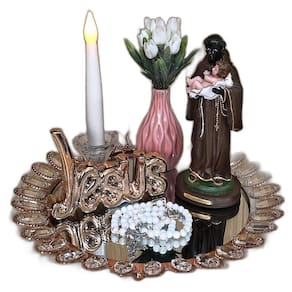 Imagem São Benedito Resina 20 cm São Benedito, conhecido como santo protetor dos cozinheiros e intercessor contra a fome, foi instrumento de Deus para a realização de vários milagres. Dimensões: altura: 21 cm - Largura: 8,5 cm - Profundidade: 7,5 cm Dimensões aproximadas do produto. Produto pintado a mão, podendo sofrer variações de cores. Marca: Não Informado
