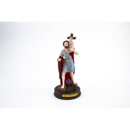 Imagem São Cristóvão Resina 14 cm São Cristóvão é considerado o padroeiro dos motoristas e viajantes. Dimensões: altura: 14 cm - Largura: 6,5 cm - Profundidade: 6 cm Dimensões aproximadas do produto. Produto pintado a mão, podendo sofrer variações de cores. Marca: Não Informado