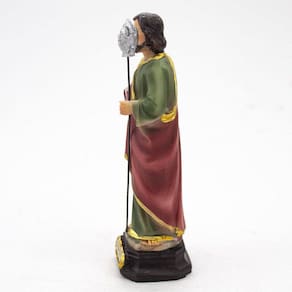 Imagem São Judas Importado Resina 14 cm São Judas Tadeu é considerado o santo das causas perdidas ou impossíveis. Dimensões: altura: 14 cm - Largura: 4 cm - Profundidade: 3 cm Dimensões aproximadas do produto. Produto pintado a mão, podendo sofrer variações de cores. Marca: Amém Decoração Religiosa Ean: 6988110241640