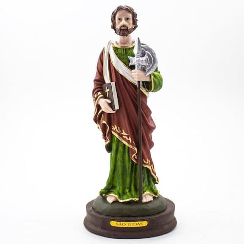 Imagem São Judas Resina 20 cm São Judas Tadeu é considerado o santo das causas perdidas ou impossíveis. Dimensões: altura: 22 cm - Largura: 9,5 cm - Profundidade: 7,5 cm Dimensões aproximadas do produto. Produto pintado a mão, podendo sofrer variações de cores. Marca: Não Informado