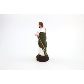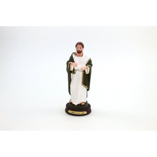 Imagem São Lucas Resina 14 cm São Lucas nasceu em Antioquia da Síria, é considerado o Padroeiro dos médicos, por também ele ter exercido essa profissão. Foi convertido pelo apóstolo , do qual se tornou inseparável e fiel companheiro de missão. Dimensões: altura: 13,5 cm - Largura: 5,5 cm - Profundidade: 4,5 cm Dimensões aproximadas do produto. Produto pintado a mão, podendo sofrer variações de cores. Marca: Não Informado